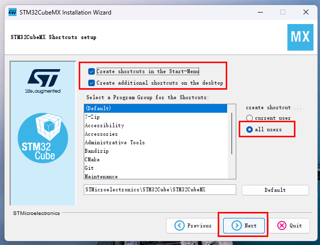 点击安装---》为所有用户安装,接下来每一步都按照图片上指示进行安装