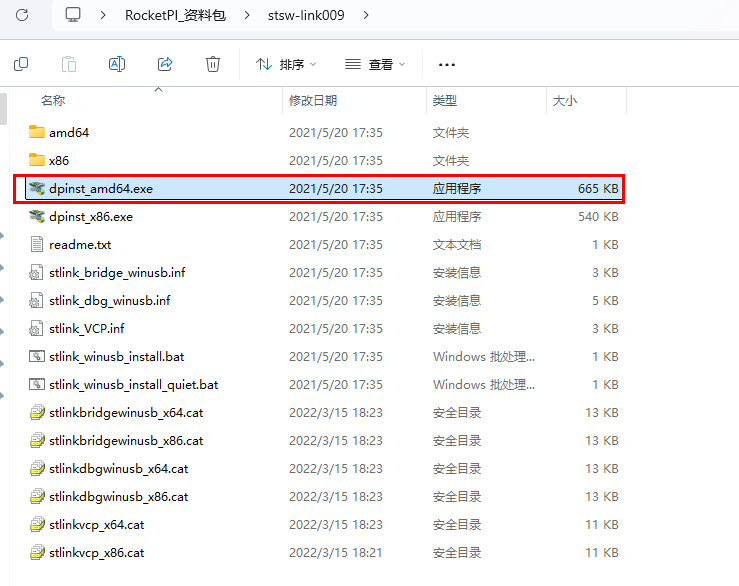 【环境】stlink安装 解压 stsw-link009 dpinst_amd64.exe 和 dpinst_x86.exe 是 ST-Link 驱动程序的安装文件,它们分别针对不同的系统架构: dpinst_amd64.exe:适用于 64位 系统(AMD 或 Intel 处理器)。 dpinst_x86.exe:适用于 32位 系统(AMD 或 Intel 处理器)。 双击 dpinst_amd64.exe安装 stlink驱动
